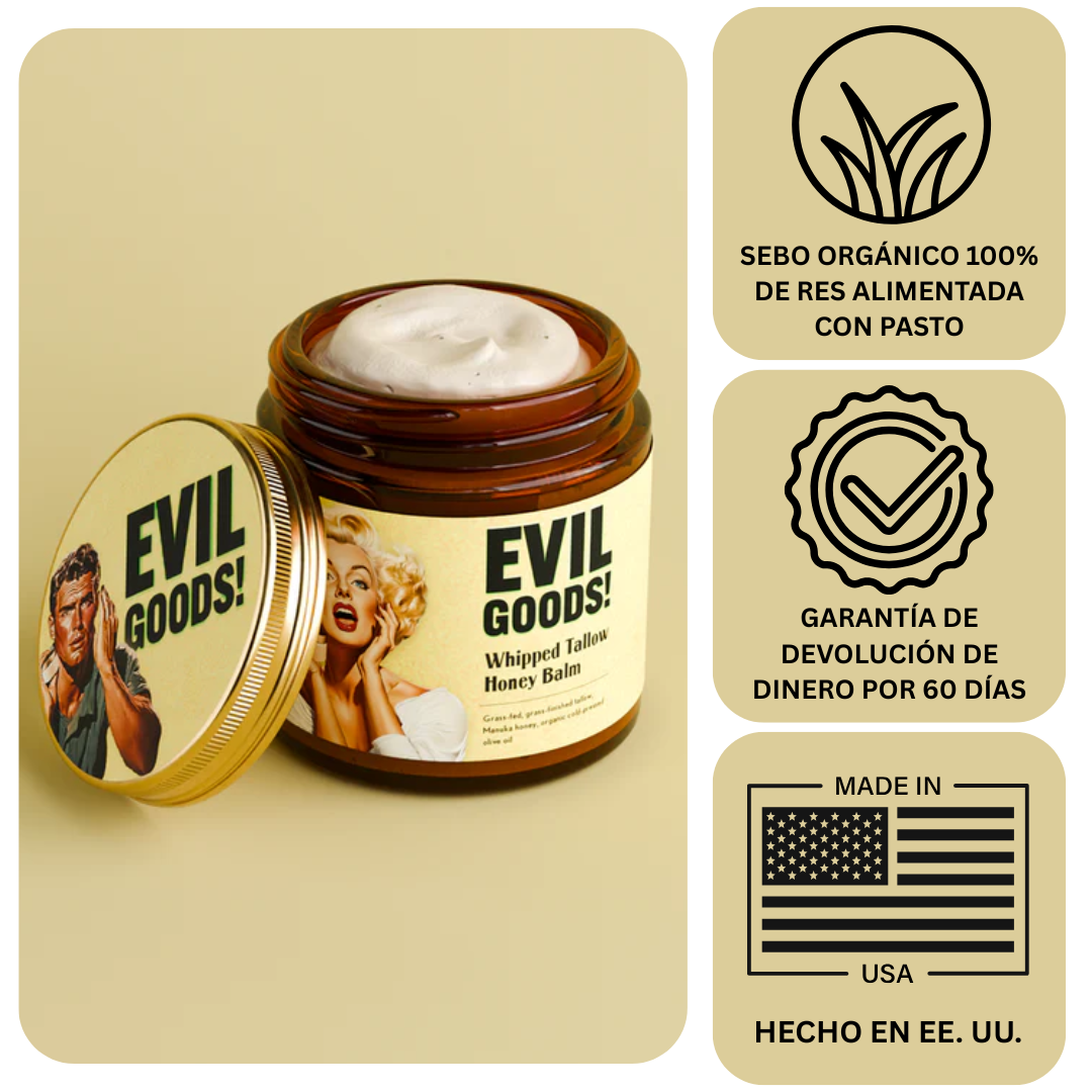 Nuestro bálsamo de sebo contiene solo 4 ingredientes naturales: sebo de res de animales alimentados y alimentados con pasto, aceite de oliva orgánico prensado en frío, extracto de caléndula y vitamina E orgánica. Usamos miel de manuka en algunas versiones por sus propiedades curativas adicionales. Sin rellenos ni químicos, solo nutrición natural y pura para la piel que permite que esta se desarrolle de forma natural.